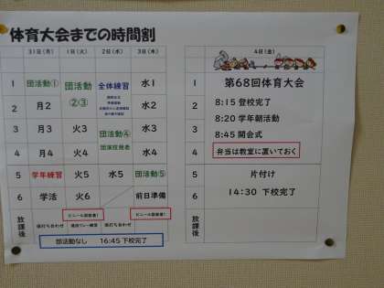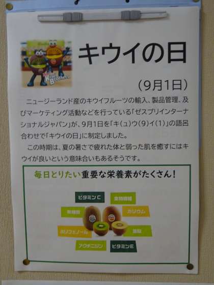 体育大会までの日程、今日は何の日が掲示されています。9月1日は、キウイの日です。