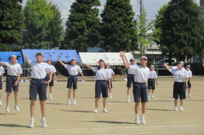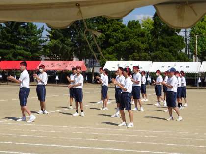 団演技の予行をしました。体育大会当日は、団テントで他団の演技を見ますが、今日は正面で団演技を見ました。また、エールの練習をしました。実行委員が黄色のハチマキをしています。団演技やエールも縮小されていますが、今できることを各団、実行委員は工夫しました。当日の演技をお楽しみに!!