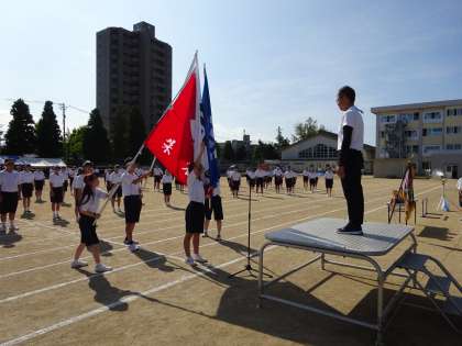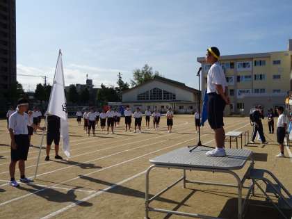 開会式が始まりました。実行委員による開会宣言、昨年度優勝団の団長による選手宣誓です。
