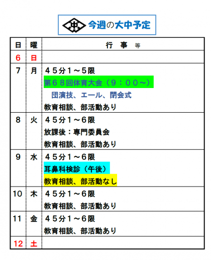 今週の予定