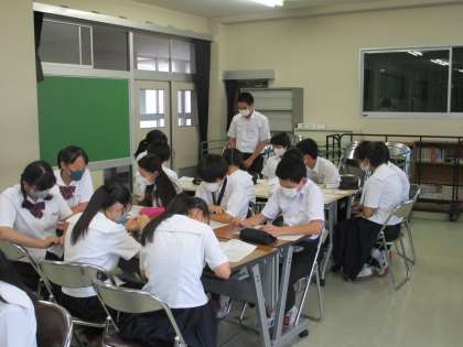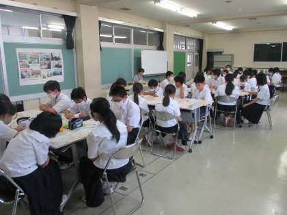 各学級の合唱実行委員、パートリーダー、指揮者、伴奏者が集まり、合唱研修会を行いました。資料を読みながらリーダーとしての役割等を確認し、最後に「自分の役割を全うするためには何ができるか」を考え、発表しました。今後の活躍に期待しています!