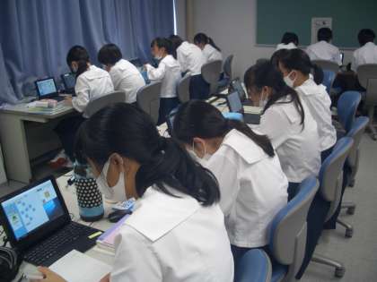技術では、コンピュータでプログラムを作成していました。1人1人違うプログラムです。