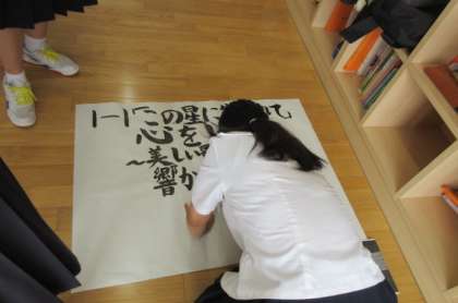 先日、みんなで決めた合唱コンクールの目標を清書しています。仕上がりが楽しみですね!