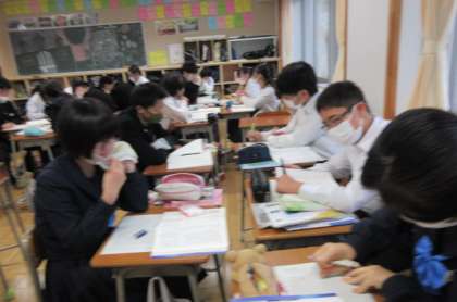 好きな和歌を一つ選んで、鑑賞文を書いています。さすが3年生!すらすらと書いています。