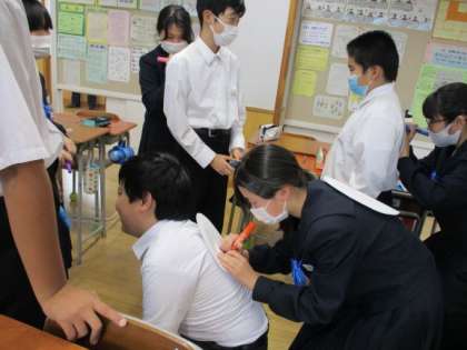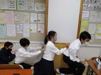今日のテーマは「賞賛」でした。お互いに友達の良いところを思い浮かべて、賞賛の言葉や、感謝の言葉を書いていました。