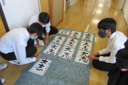 文化活動発表会に展示する作品を清書しました。元気いっぱいのすてきな文字が並んでいます。
