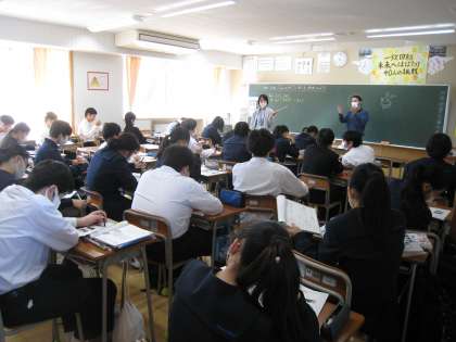 下 2年2組 英語科 ALTの先生のネイティブな発音を学んでいます。