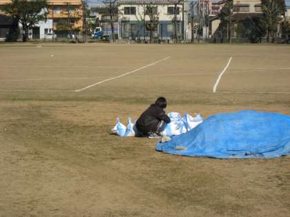 上 体育の授業で必要な土嚢(土が入った袋)を