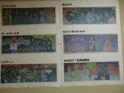 黒板アートが完成しました。今日は、生徒、教職員による投票日です。とても素敵なアートになりました。来校の折にはぜひご覧ください。