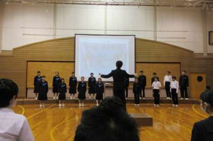 合唱コンクールが始まりました。1年生からです。初めてのコンクールで緊張していましたが、1年生らしい元気な合唱を披露しました。