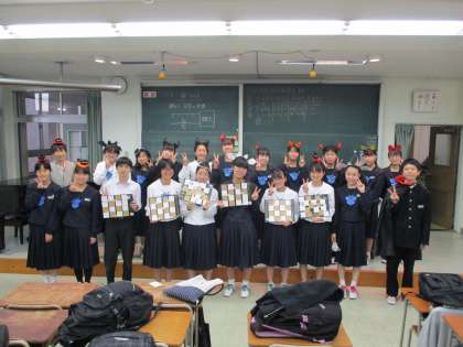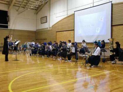 吹奏楽部の3年生はこの日で引退となります。最後に全員で記念撮影をしました。