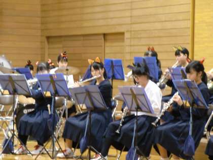 文化活動発表会の最後を飾るのは、吹奏楽部です。ハロウィーンの前日ということもあり、部員、顧問が仮装して演奏しました。アンコールもあり盛り上がりました。