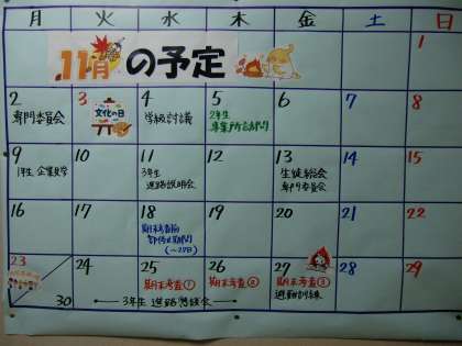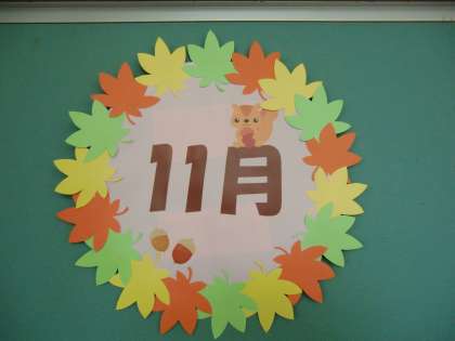 11月になりました。行事や掲示物など秋の深まりが感じられるものに変更しました。