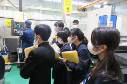 1組は津根精機と丸栄運輸機工を見学しました。富山県にはものづくりに関わる会社がたくさんあることや、整理整頓の大切さ、中学生時代にやっておくとよいことなど、たくさんのお話を聞くことができました。協力していただいた企業の皆様、ありがとうございました。