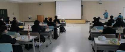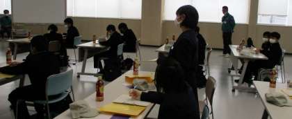 上の写真は2組ユニゾーンでの活動風景です。説明を聞き、質問をしています。