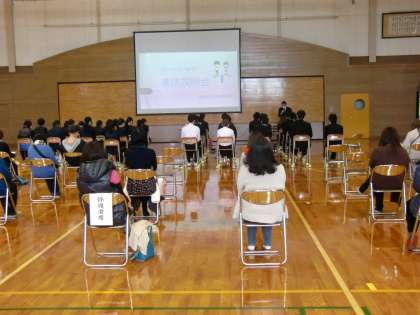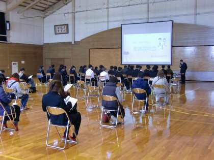 今日は、3年生の進路説明会です。今後の進路日程や進路先等の説明がありました。分からないことは先生に確認したり相談したりして、進路選択をしていきましょう。