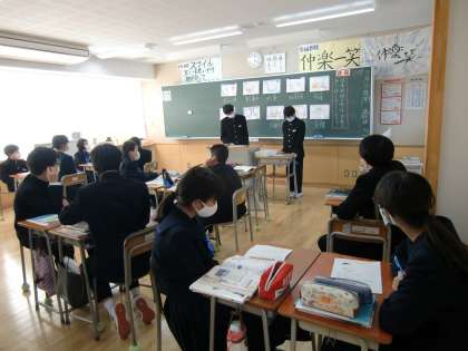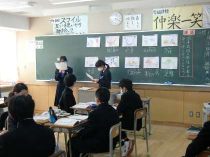 故事成語の意味や由来を調べて発表会をしていました。イラストも添えてあり、分かりやすく発表しています。