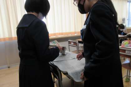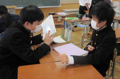 休み時間の様子です。友達と問題を出し合っている生徒、新聞を読んでいる生徒など、思い思いの時間を過ごしています。