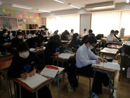 国語の授業の様子です。期末考査が近づいているので、いつも以上に集中しています。