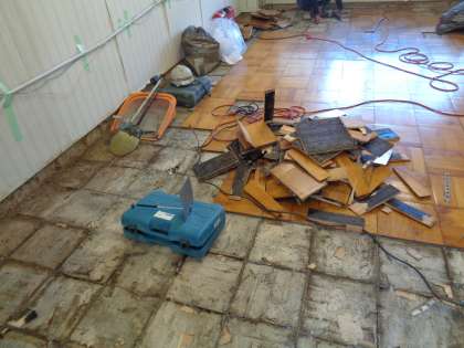 今日から事務室の床の張り替え工事が行われています。10日間程度かかる見込みです。