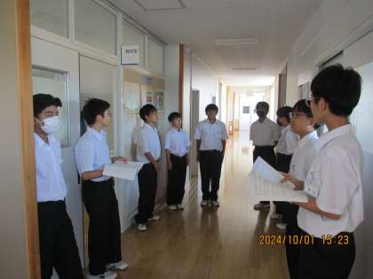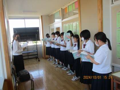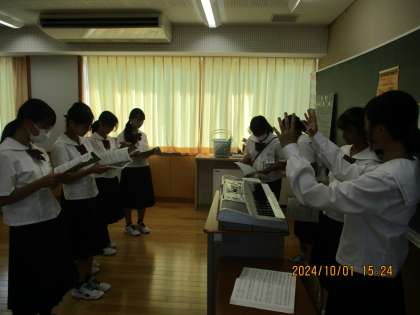 10月に入り、体育大会の興奮も冷めないうちに、文化活動発表会に行われる「合唱コンクール」の練習が始まりました。次は、クラス対抗です。今日は音程を確かめる様子が多く見られました。文化活動発表会は10月19日(土)です。みなさん、がんばりましょう!