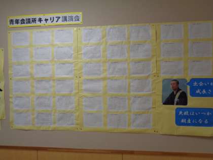 先日行われた青年会議所の方を迎えての講演会の感想が2年生の廊下に掲示されています。