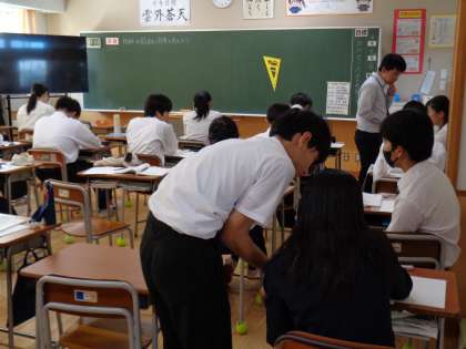 3年生は、社会科と数学です。数学では、全員が分かるまで教え合っていました。
