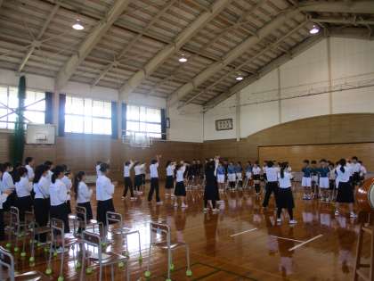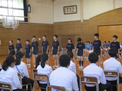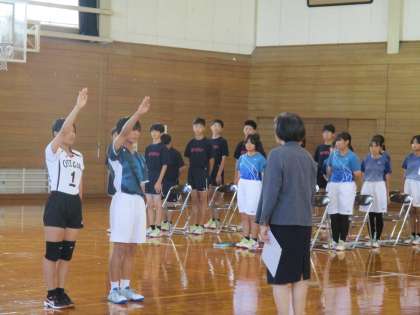 10月11日(金)から行われる富山市新人大会の壮行会を行いました。各部一人一人の抱負の後、バドミントン部・バレーボール部の主将が選手宣誓を行いました。また、在校生が気合いのこもったエールを選手に送りました。ぜひ、自分の全力を尽くしがんばってきてください。魅せろ!大中魂!!
