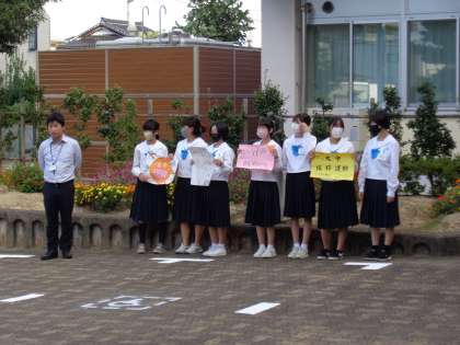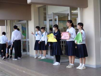 朝の挨拶運動にたくさんの人が協力していました。元気のよい「おはようございます」の声が響いていました。