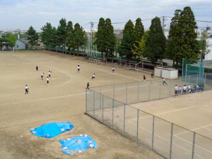 3年生は、英語と保健体育です。保健体育ではグラウンドでソフトボールの試合をしていました。チーム全員で声を合わせて応援していました。
