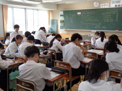 1年生は技術家庭科の授業をしていました。まわりの人と相談しながら、考えていました。