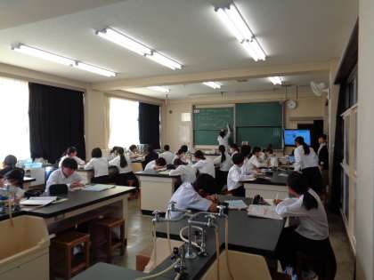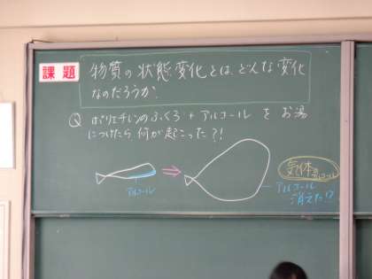 1年生は理科室で授業をしていました。物質の状態変化について学習していました。