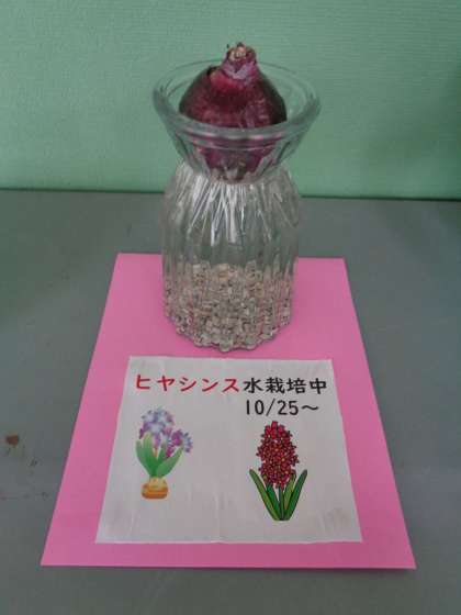 職員室前で水栽培を始めました。5日目です。根が伸びています。今後の成長を観察しましょう。
