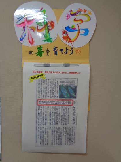 給食室前に科学の掲示が新しく加わりました。興味のある人は読んでくださいね。