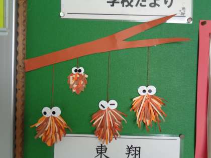 グラウンドの樹木が色付いてきました。校内の掲示でも、秋を感じます。