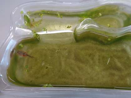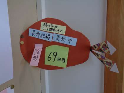 校内で飼っているカブトエビが脱皮をくりかえし、成長を続けています。通常の寿命を遙かに超えて元気に泳いでいます。