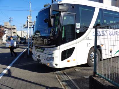 9:00 今朝はとても寒くなりましたが、快晴です。1年生は企業見学へ出発しました。