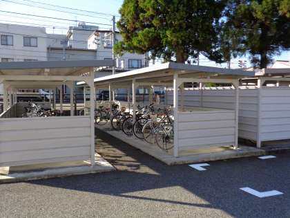 自転車小屋です。毎日きちんと並べています。鍵掛けを忘れないようにしましょう。