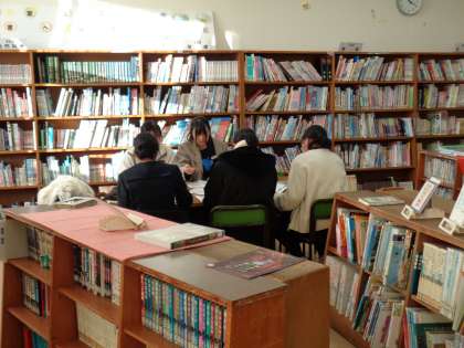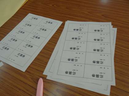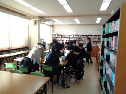 放課後の図書室です。図書委員会が次の企画の準備をしていました。応募券や各クラスの表を作っていました。楽しい企画が行われるので、積極的に参加しましょう。