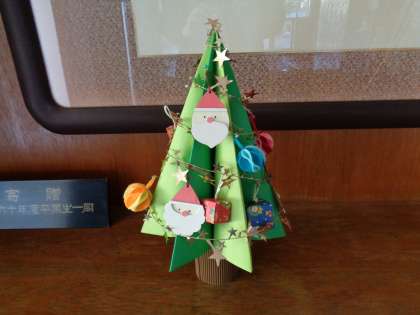 正面玄関にツリーが置かれました。職員の手作りです。ありがとうございます。