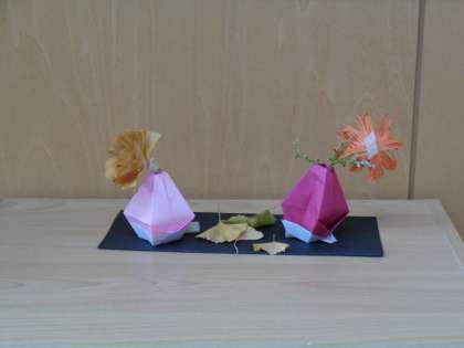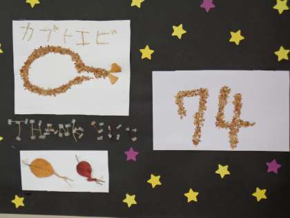 秋らしく落ち葉などを使って掲示物等が作られています。