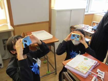 1年家庭科の授業で、乳幼児の家庭内事故が多い理由を考えるために「幼児視野体験」を行いました。「幼児視野体験めがね」を用いて、幼児はどのような見え方をしているのか体験をしました。体験後「視野がせまいから危険に気付きにくい」と鋭い発見を生徒はしていました。今後の授業で、どのようにすると家庭内事故がふせぐことができるか、考えていきたいです。