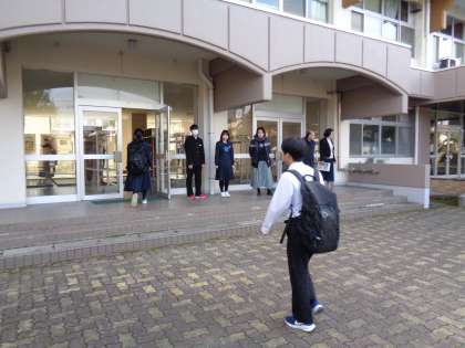 今朝も晴れていて気持ちのよい朝です。元気よく登校しています。