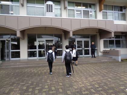 今朝は曇り空です。今日は、1年生は食育講座、2年生は平和の朗読会、3年生は進路懇談会があります。