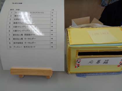 図書室でプレゼントの応募をしています。応募券をもらって応募しよう!