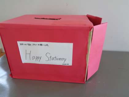 生徒会の活動で、使わなくなった文房具を回収しています。回収のBOXが設置されました。