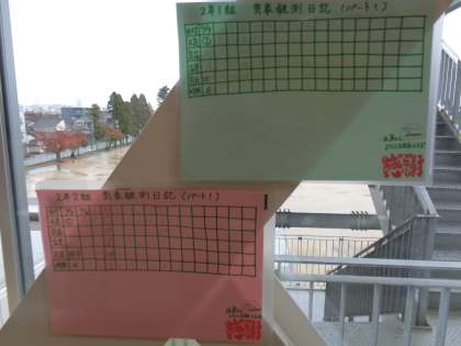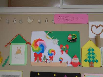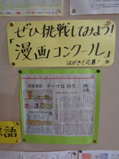 校内掲示です。季節を表す掲示や教科に関する掲示、各自が応募する紹介など工夫されています。
