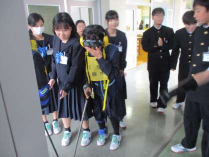 今日も家庭科の授業で「高齢者疑似体験」を行いました。今回の体験で、希望者全員が高齢者体験を行うことができました。体験後の感想では、「今回の体験を通して高齢者になると身体が不自由に感じることが多くなると実感しました。これからは、自分の祖父母を自分が支えてあげたいです。」と書いていました。そのようなあたたかい心をもって、生活して欲しいです。