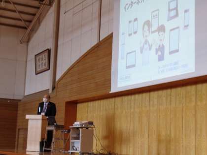 ネットモラル講座を行いました。ネット依存、ネットいじめ、不確かな情報の拡散、情報漏洩などについて、事例を交えて教えていただきました。講座の中にいくつかの標語が出てきました。ネットモラルの標語の募集が届いています。給食室前に掲示したので、応募してみましょう。ネット使い方を考える機会になりますよ。