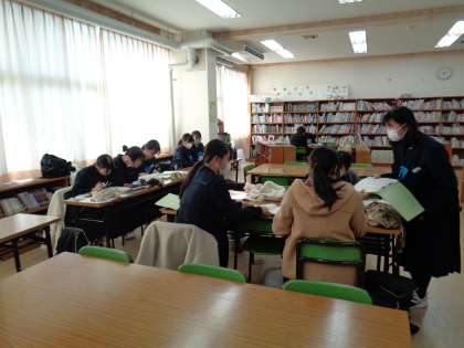 放課後の図書室です。期末考査1日目が終わりましたが、2日目に向けて今日も学習している人がたくさんいました。